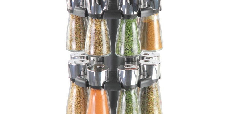 Buď si pořiďte hotový otočný stojan na koření, nebo si ho dejte zhotovit na míru. Koření tak zaberou méně místa a jednoduchým zatočením máte všechny po ruce byť v rohu kuchyňské linky nebo na polici v blízkosti varného centra.